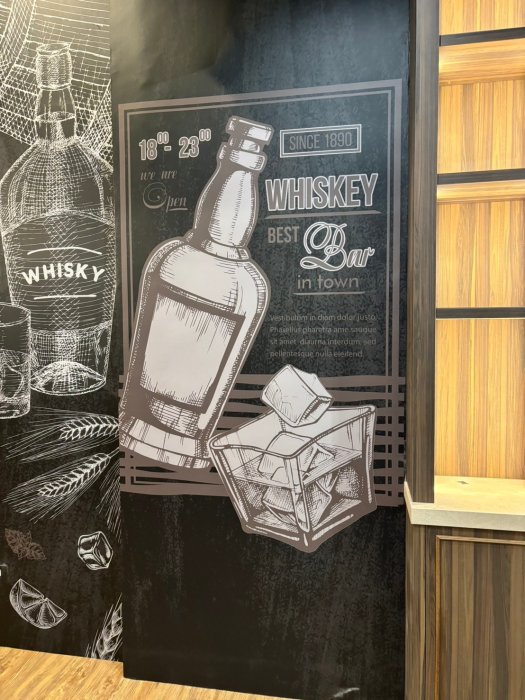 3. 可貼於背景雜亂之牆面,冷裱分霧膜與亮膜,霧膜不易反光,亮膜可使更明亮但容易炫光,視客戶需求而定。